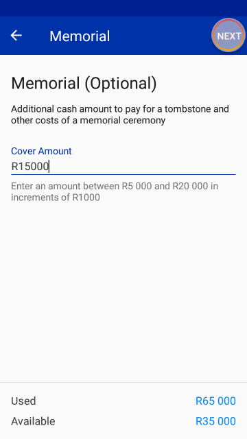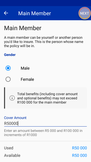 - Maximum sum assured: R50 000